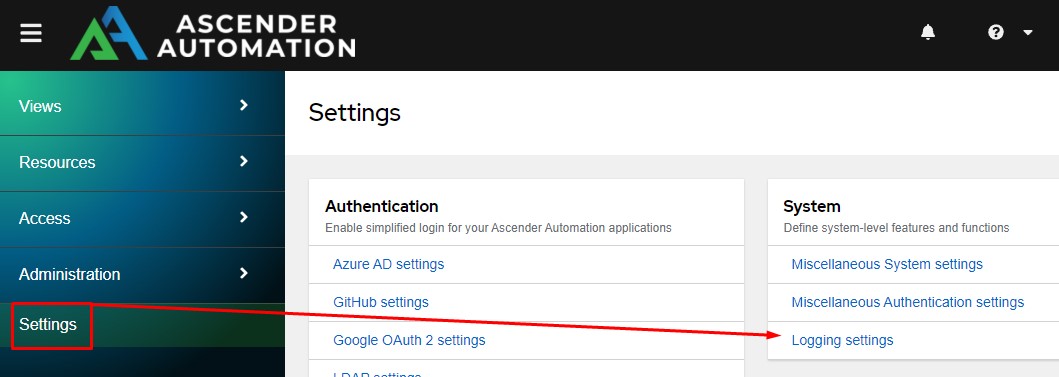 Begin by going to Settings and choose Logging Settings: