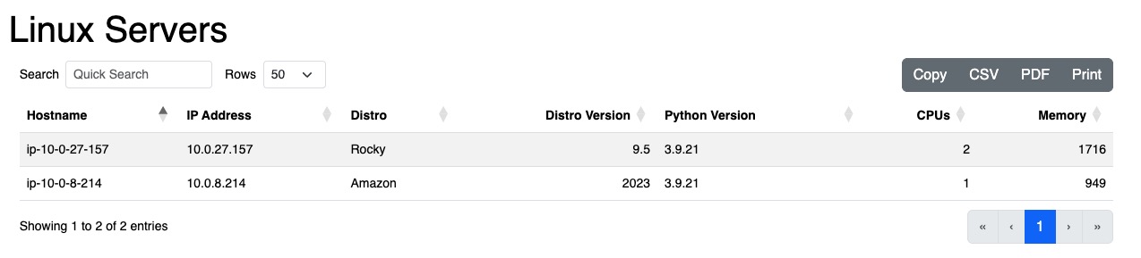 The Reports section allows an administrator to create reports based on any fact information collected. By default, there are two reports in the system: one for Linux servers and one for Windows servers. While these are quite functional, they primarily serve as examples of what can be created.
