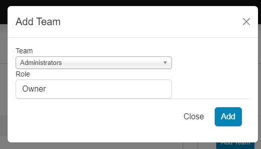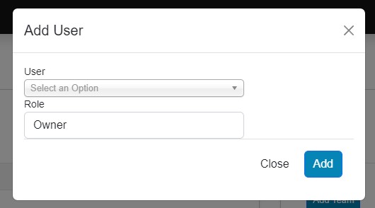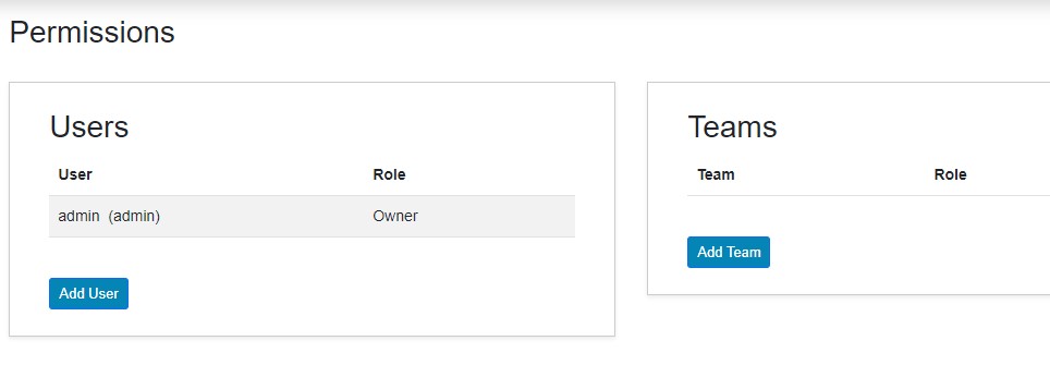 - Teams: Teams are groups to which you can add users. Any permissions assigned to a team will be inherited by users added to the team. Clicking on Add Team gives the ability to select a team from the menu and assign it a role of either viewer or editor.