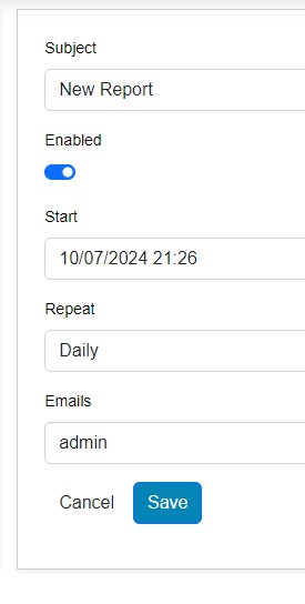 Clicking the Add Schedule button presents the option to create a new report schedule. In this menu, you can assign it: