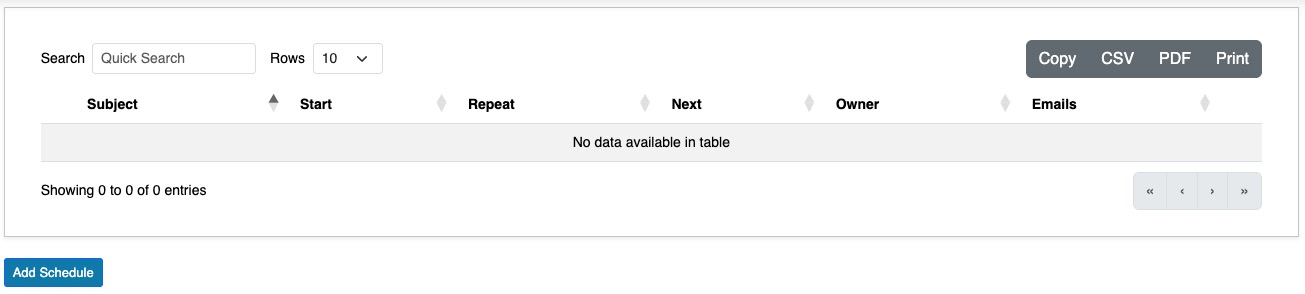 Clicking the Schedule button next to a report enters the schedule menu for that specific report. Here, you can view all currently created schedules.